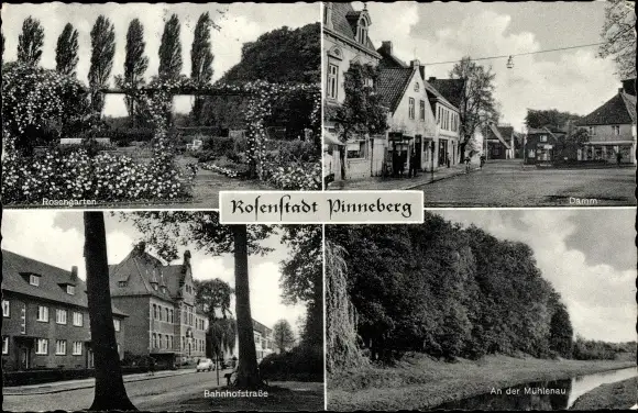 Ak Pinneberg in Schleswig Holstein, Rosengarten, Damm, Bahnhofstraße, Mühlenau