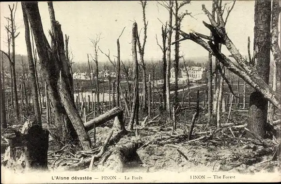 Ak Pinon Aisne, L'Aisne devastee, La Foret