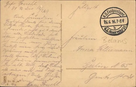 Zustand, siehe Scan, gelaufen, 1916 - ca 14 cm X 9 cm