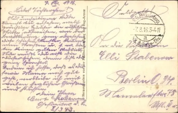 Zustand, siehe Scan, gelaufen, 1916 - ca 14 cm X 9 cm