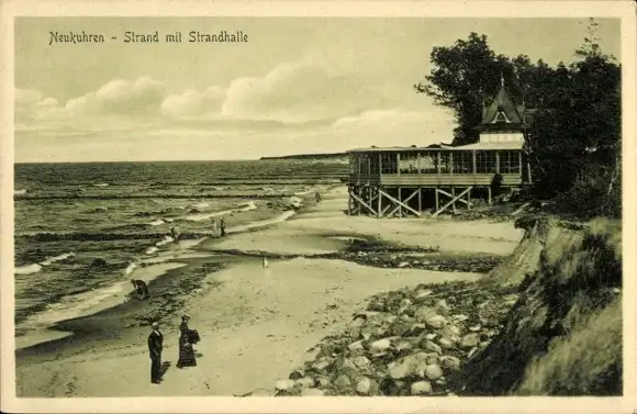 Ak Pionerski Neukuhren Ostpreußen, Strand mit Strandhalle