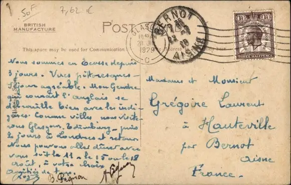 Zustand, siehe Scan, gelaufen, 1929 - ca 9 cm X 14 cm