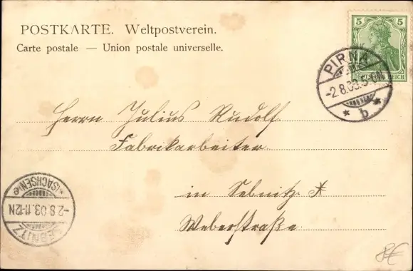 Zustand, siehe Scan, gelaufen, 1903 - ca 14 cm X 9 cm