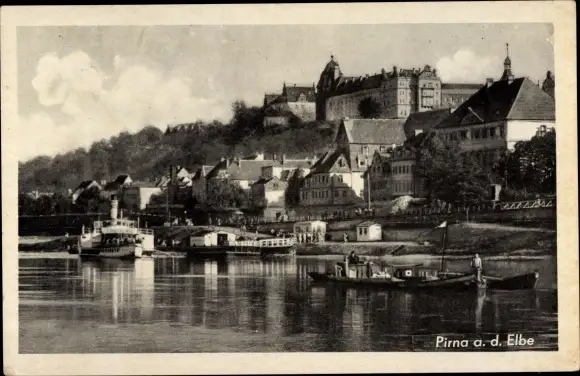 Ak Pirna an der Elbe, Blick zum Schloss, Teilansicht