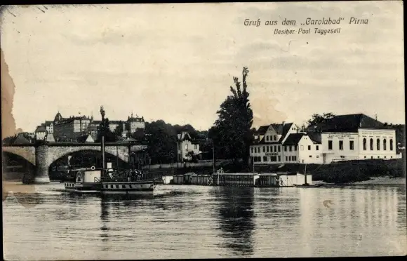 Ak Pirna an der Elbe, Carolabad, Dampfer