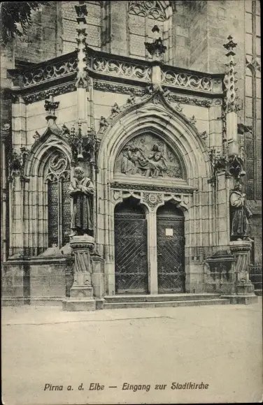 Ak Pirna an der Elbe, Eingang zur Stadtkirche