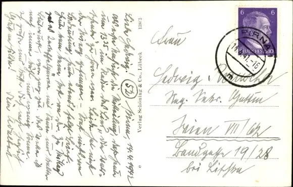 Zustand, siehe Scan, gelaufen, 1941 - ca 14 cm X 9 cm