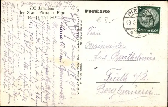 Zustand, siehe Scan, gelaufen, 1933 - ca 14 cm X 9 cm