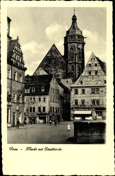 Ak Pirna an der Elbe, Markt mit Stadtkirche
