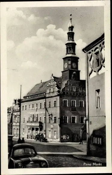 Ak Pirna an der Elbe, Marktplatz, Rathaus, Straßenpartie