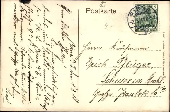 Zustand, siehe Scan, gelaufen, 1911 - ca 14 cm X 9 cm