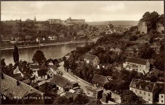 Ak Pirna an der Elbe, Panorama von Posta aus