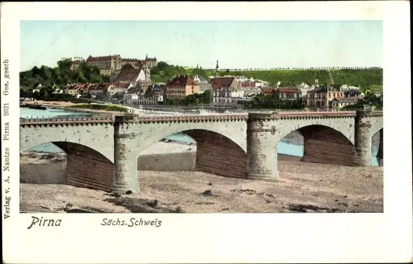Ak Pirna an der Elbe, Teilansicht, Brücke
