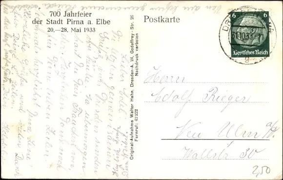 Zustand, siehe Scan, gelaufen, 1933 - ca 9 cm X 14 cm