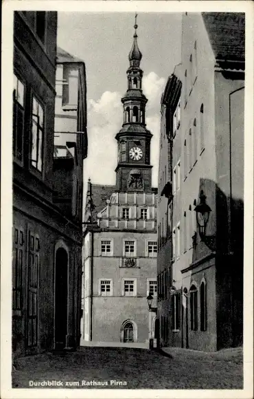 Ak Pirna in Sachsen, Durchblick zum Rathaus, Glockenturm