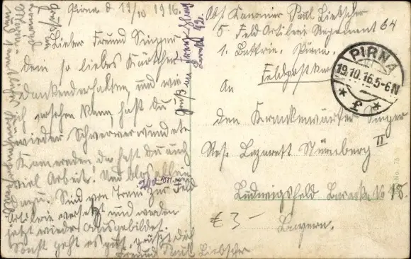 Zustand, siehe Scan, gelaufen, 1916 - ca 14 cm X 9 cm