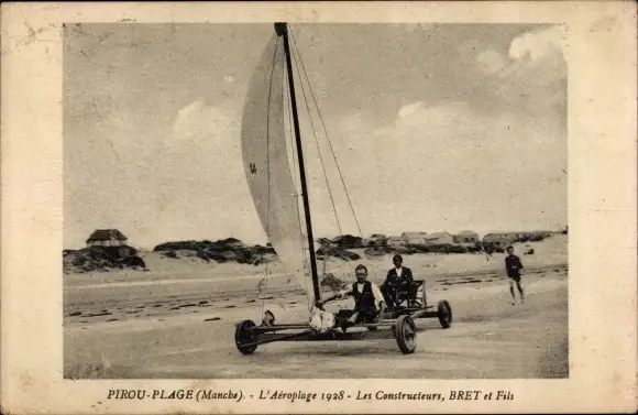 Ak Pirou Manche, Plage. L'Aeroplage 1928, Strandsegeln