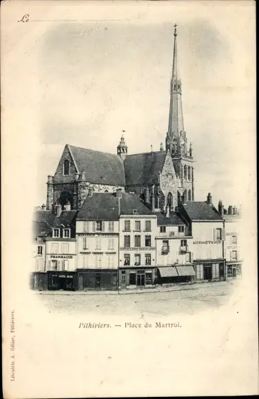 Ak Pithiviers Loiret, La Place du Martroi et la Cathédrale