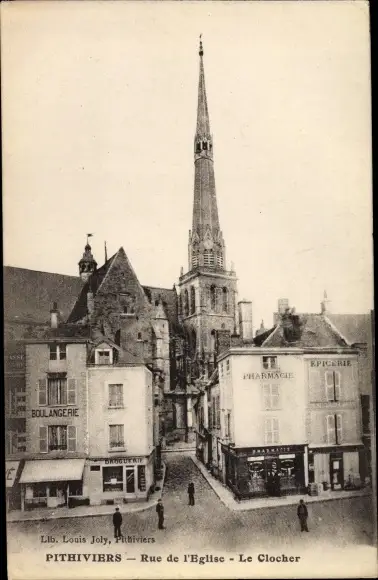 Ak Pithiviers Loiret, Rue de l'Église, Le Clocher