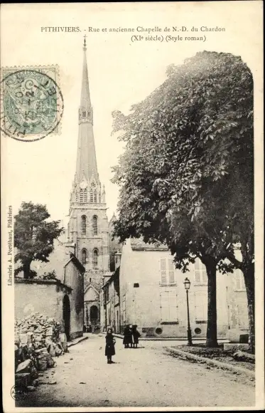 Ak Pithiviers Loiret, Rue et ancienne Chapelle de N. D. du Chardon