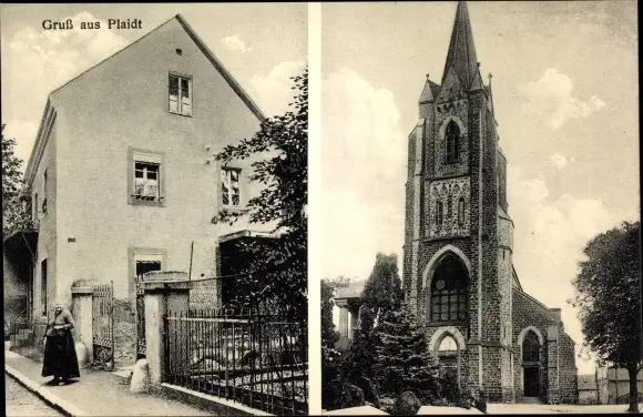 Ak Plaidt in der Eifel, Kurzwaren Anna Weiller, Mühlenweg 33, Kirche
