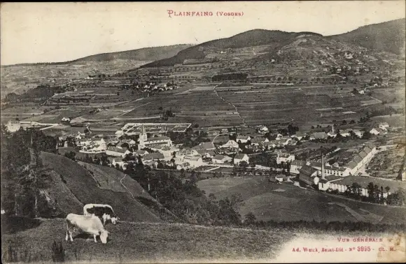 Ak Plainfaing Vosges, Vue generale, Kühe