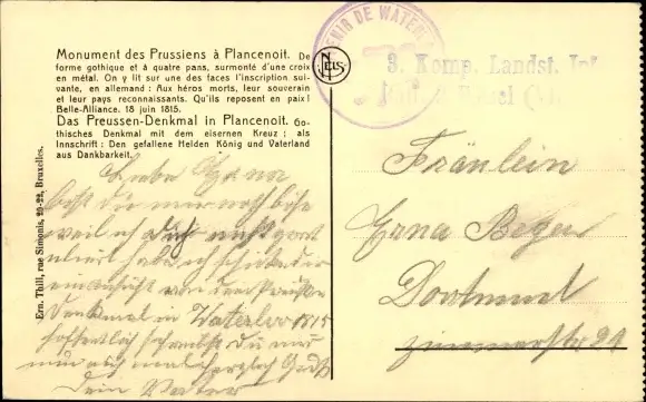 Ak Plancenoit Wallonisch Brabant, Das Preußen-Denkmal