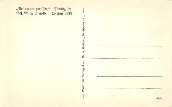 Ak Planitz Zwickau in Sachsen, Restaurant zur Post, Gaststube, Frühstücksstube
