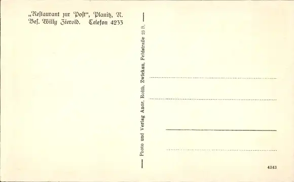 Ak Planitz Zwickau in Sachsen, Restaurant zur Post, Gaststube, Frühstücksstube