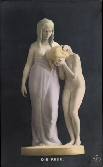 Ak Plastik Die Reue, Weinendes Mädchen, Mutter