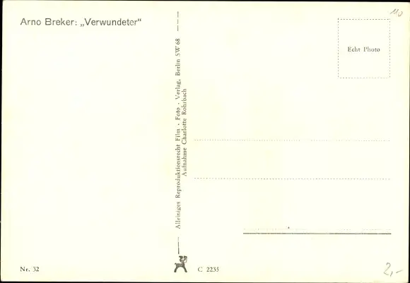 Ak Plastik von Arno Breker, Verwundeter, Männerakt
