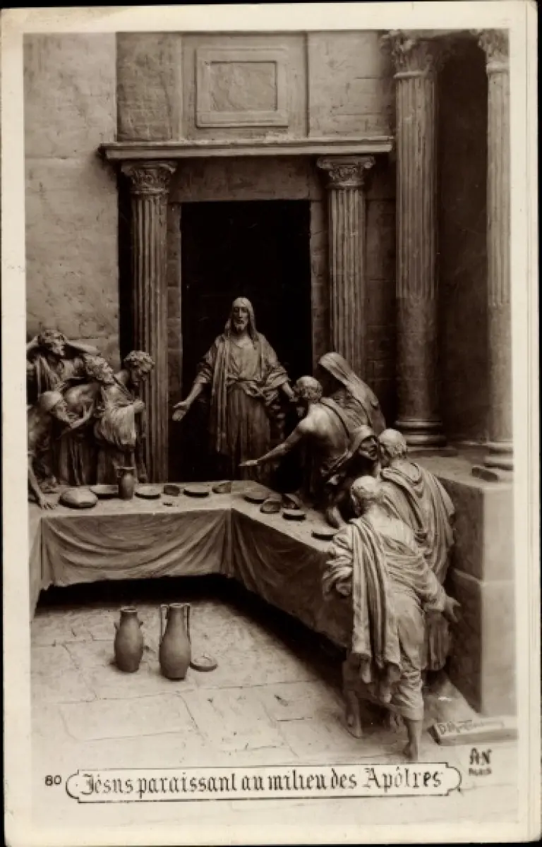 Ak Plastik von Domenico Mastroianni, Jesus mit Aposteln, Festmahl