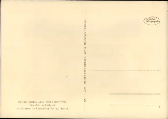 Ak Plastik von Georg Kolbe, Ruf der Erde 1933