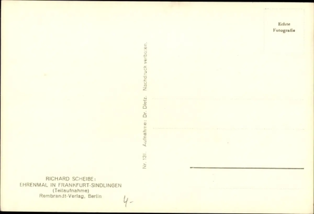 Ak Plastik von Richard Scheibe, Ehrenmal in Frankfurt Sindlingen, Teilaufnahme
