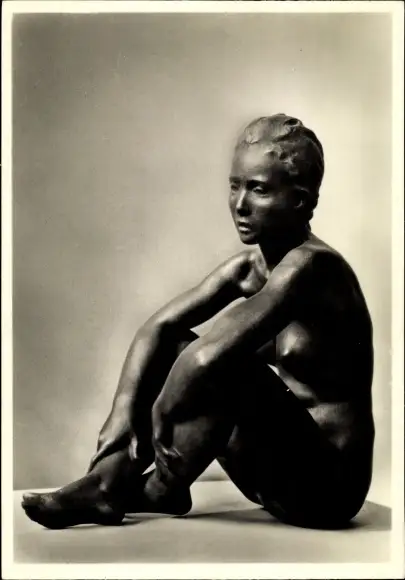 Ak Plastik von Rudolf Agricola, Sitzendes Mädchen