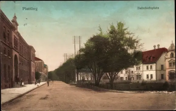 Ak Plattling in Niederbayern, Bahnhofsplatz