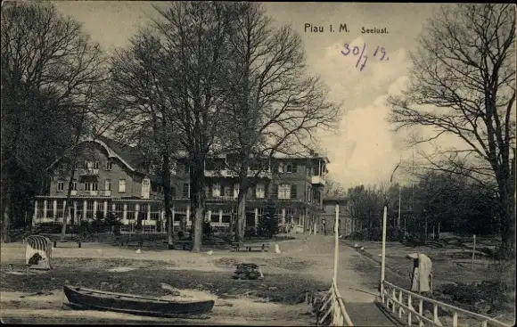 Ak Plau am See Mecklenburg, Seelust, Steg, Boot