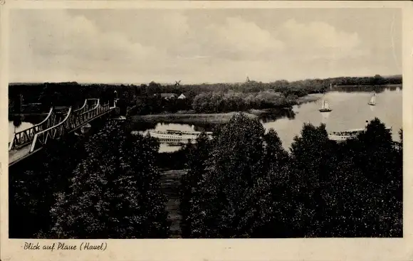 Ak Plaue Brandenburg an der Havel, Übersicht mit Brücke