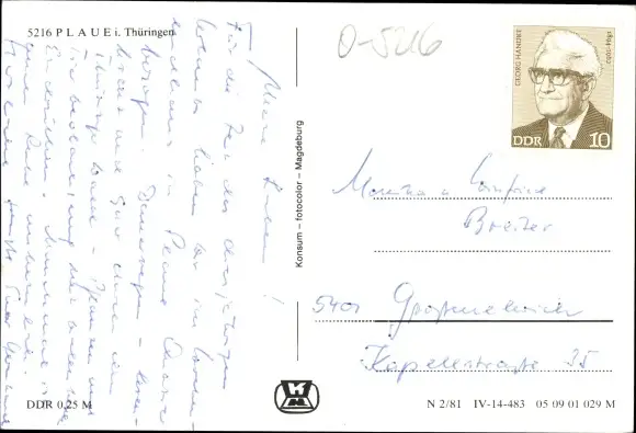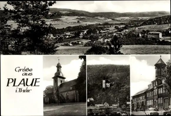 Ak Plaue in Thüringen, Panorama, Straßenpartie, Kirche, Teilansichten