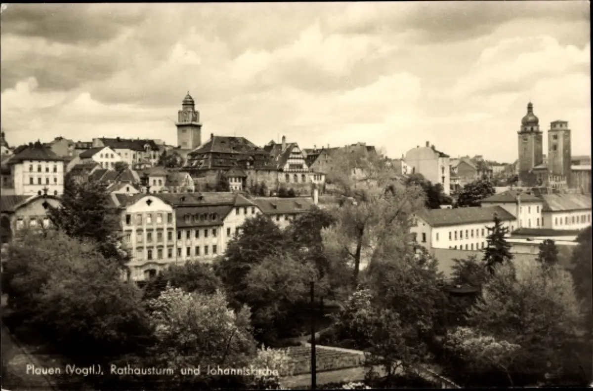 Ak Plauen Vogtland, Rathausturm, Johanniskirche