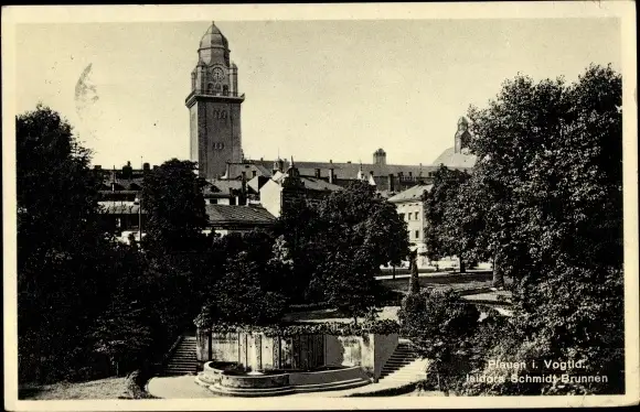 Ak Plauen im Vogtland, Isidora Schmidt Brunnen