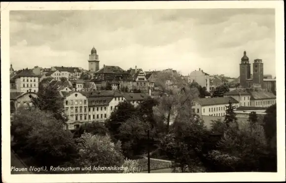 Ak Plauen im Vogtland, Rathausturm und Johanniskirche