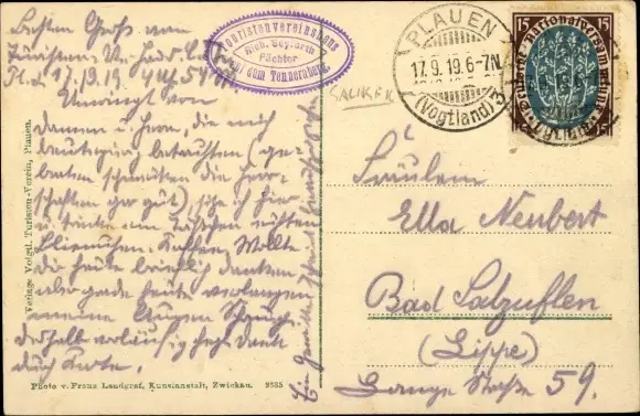 Zustand, siehe Scan, gelaufen, 1919 - ca 14 cm X 9 cm