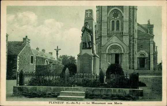 Ak Pleneuf Côtes d’Armor, Monument aux Morts, Kirche