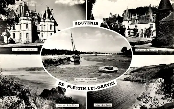 Ak Plestin les Grèves Cotes d'Amor, Chateau Coat-Carrie, Baie de Toul-on-Hery, Strand