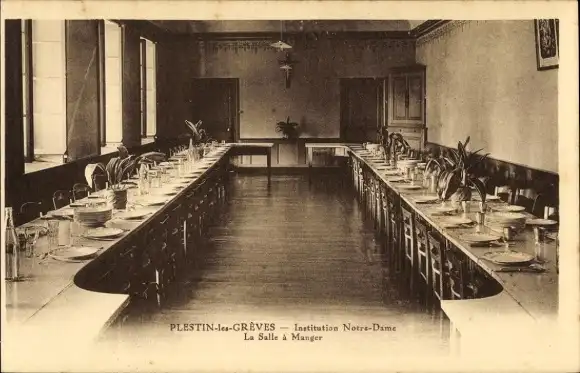 Ak Plestin les Grèves Cotes d'Amor, Institution Notre-Dame, Speisesaal