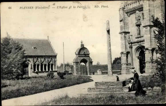 Ak Pleyben Finistère, Kirche und Parvis