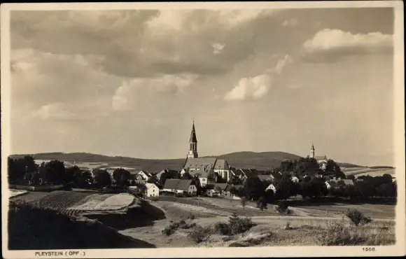 Ak Pleystein in der Oberpfalz Bayern, Gesamtansicht, Kirche