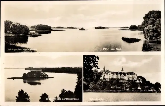 Ak Plön am See, Schloßpartie, Blick auf eine Insel