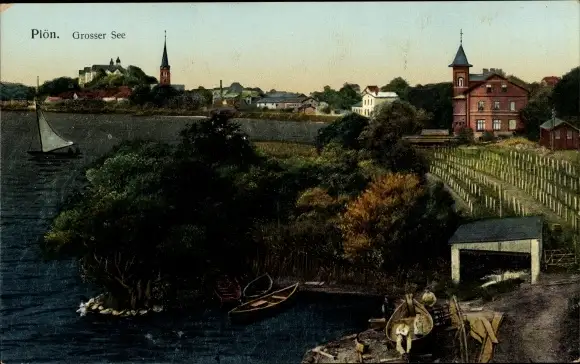Ak Plön in Holstein, Grosser See, Teilansicht vom Ort